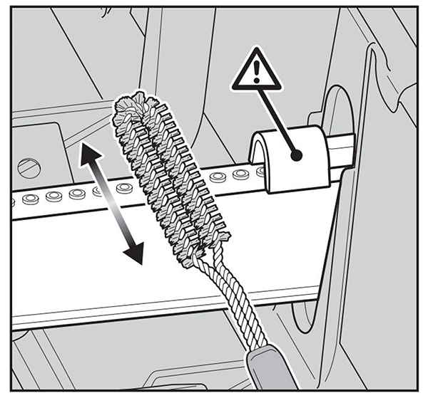 Temiz, paslanmaz çelik bir fırça kullanarak brülörlerin dışını aşağıdaki resimde görüldüğü gibi lombozlar boyunca fırçalayarak temizleyin.